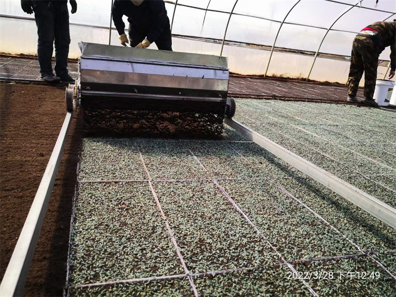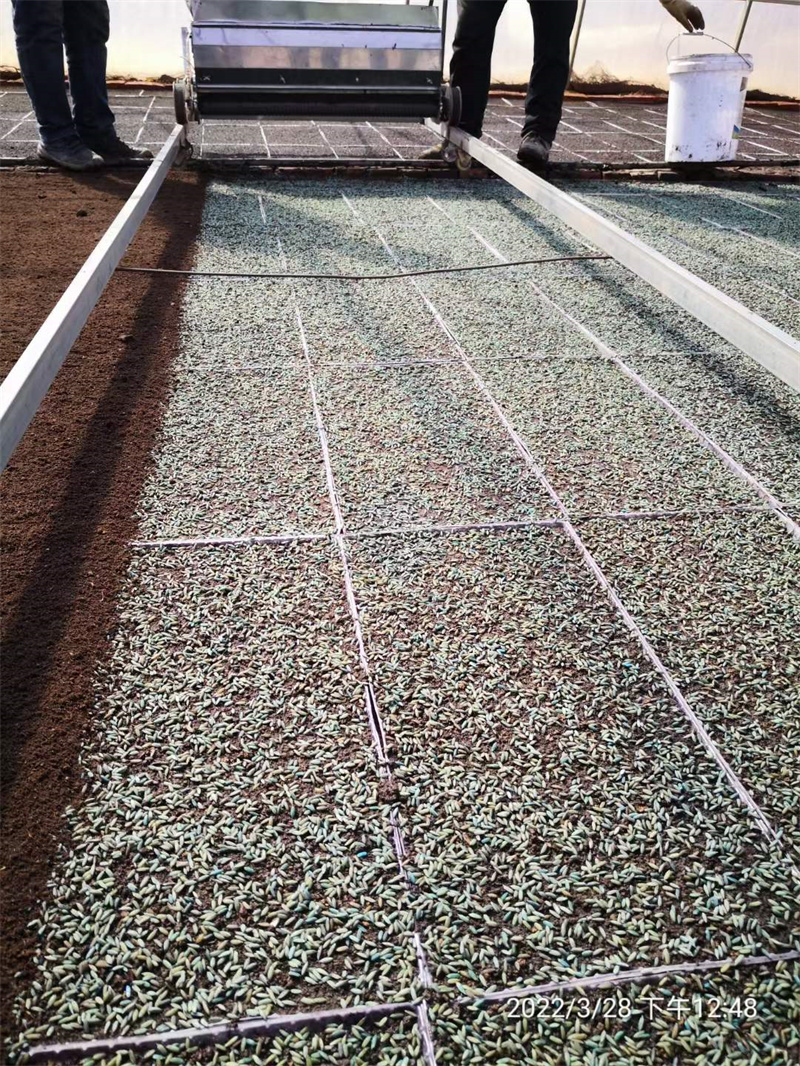 今年公司種植基地五常合作社率先采用了“超早育苗技術(shù)”,比往年播種提前10天左右,改良了育秧大棚,保證了積溫和降低播種密度,實(shí)現(xiàn)了提前進(jìn)棚育苗,秧盤擺放整齊后,自動水稻育秧播種機(jī)和覆土機(jī)再育秧盤上輕輕走過,經(jīng)過浸泡的稻花香2號原種被均勻的撒在秧盤上,覆土機(jī)再撒上一層土,一棟大鵬2000余個(gè)秧盤育苗工作就完成了。早育苗,能提高苗齡,能提前插壯秧,能提升產(chǎn)量,能提高稻花香大米的質(zhì)量和口感!